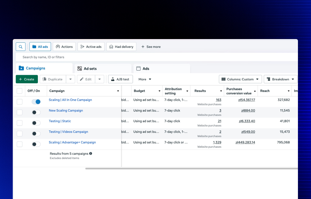 Wszystkie nasze reklamy są wybierane na podstawie rygorystycznych kryteriów wydajności i z myślą o jak najlepszych wynikach. Jednak to, że działają dla innych marek, nie oznacza, że zadziałają również dla Twojej. Dlatego zalecamy testowanie różnych reklam, aby sprawdzić, które najlepiej trafiają do Twojej grupy odbiorców.
