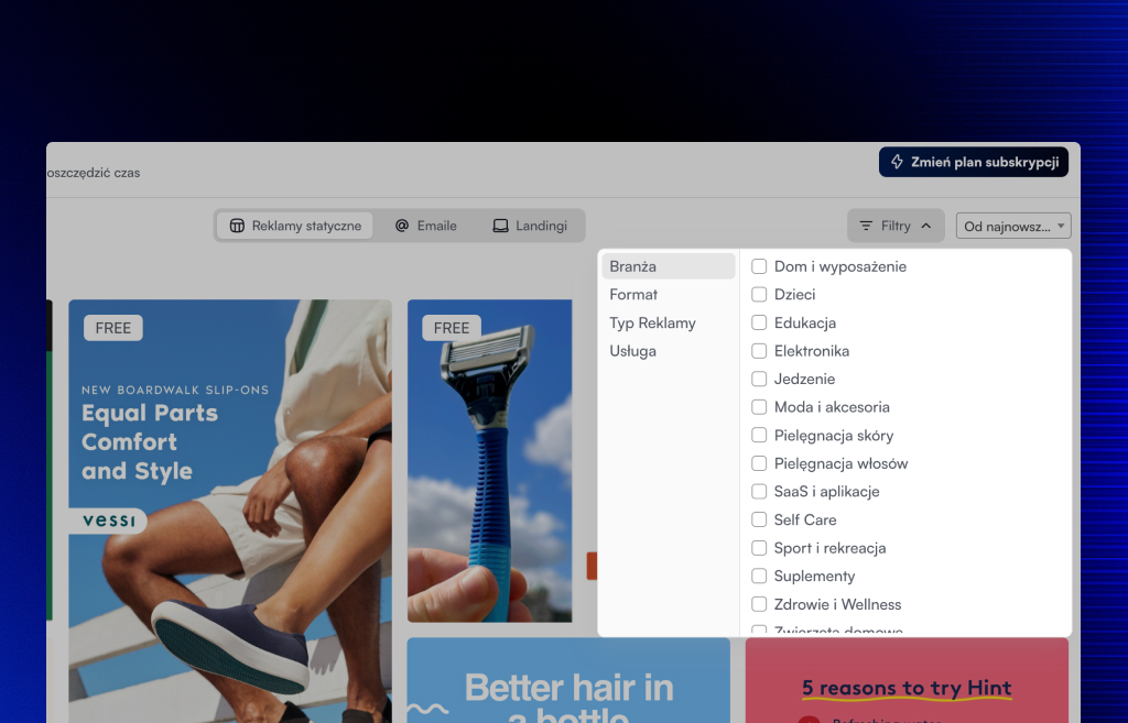 Wybierz z pośród setek przetestowanych i gotowych do wdrożenia reklam.
